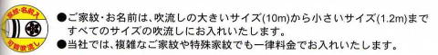 吹流しのサイズは大きいサイズ(10m)からベランダ用サイズ(1.2m)までお入れします。 吹流しの両面に家紋・名前をお入れいたします。 複雑な家紋や特殊家紋でも写真やコピー等で製作します。